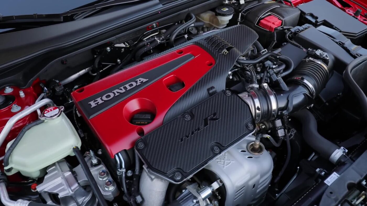 Dưới nắp ca-pô của Honda Civic Type R là động cơ bốn xi-lanh tăng áp 2.0 lít, tạo ra 315 mã lực. Động cơ này được truyền độc quyền qua hộp số sàn sáu cấp và chỉ truyền lực tới lốp trước. Khả năng tăng tốc từ 0-100km/h chỉ mất chưa đến 5 giây, mang lại trải nghiệm lái xe mạnh mẽ và phấn khích.