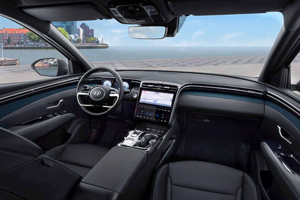 Bên trong, Tucson 2023 được thiết kế với nhiều tính năng và tiện nghi cao. Xe được trang bị hệ thống giải trí màn hình 10,25 inch, điều hòa hai vùng độc lập, hỗ trợ Apple CarPlay và Android Auto, và trên phiên bản cao cấp được trang bị âm thanh 8 loa Bose. Ghế ngồi được bọc da và có tính năng sưởi ấm, còn hàng ghế sau có thể gập lại để tăng không gian chứa đồ.